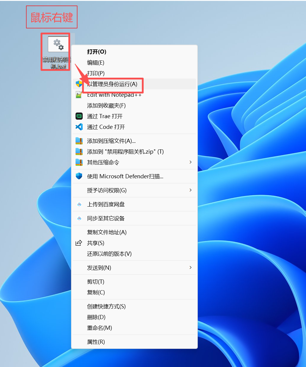 使用方法:如下图,【鼠标右键】选择【以管理员身份运行】,根据提示按【回车键】确认即可。
